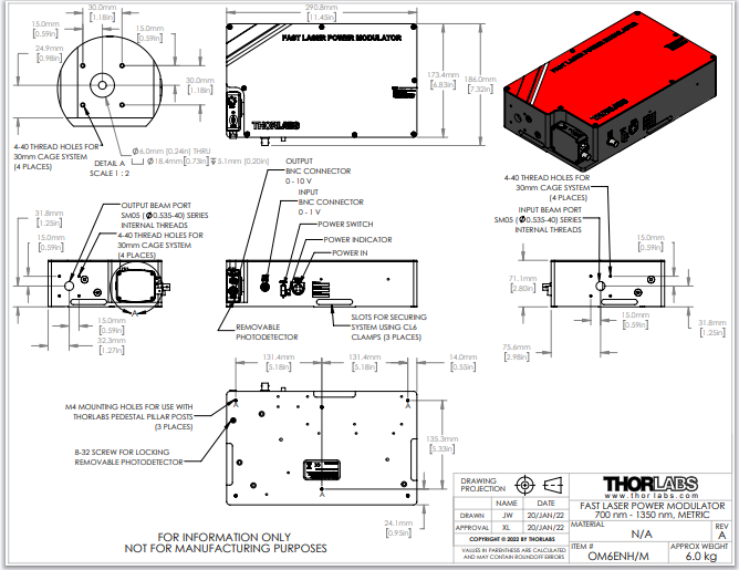 Thorlabs索雷博     OM6ENH/M - 高速激光功率调制器