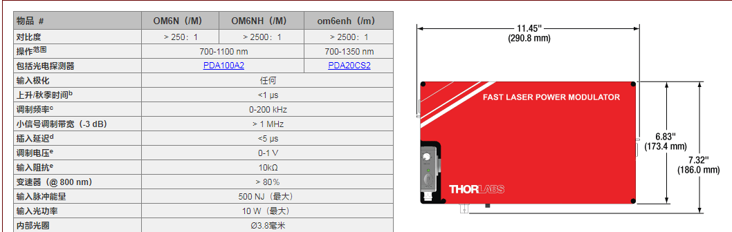 Thorlabs索雷博 OM6ENH/M - 高速激光功率调制器