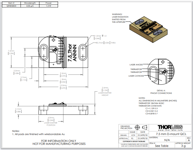 Thorlabs索雷博     QF4050D3 - 法布里-珀罗QCL