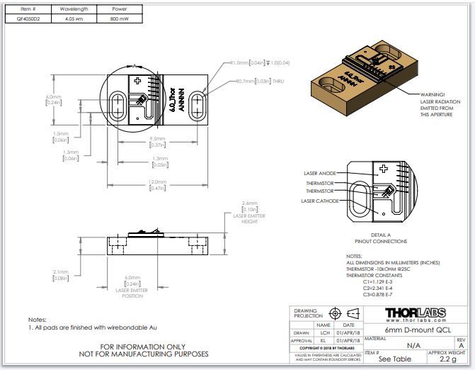 Thorlabs索雷博 QF4050D2 - 法布里-珀罗QCL