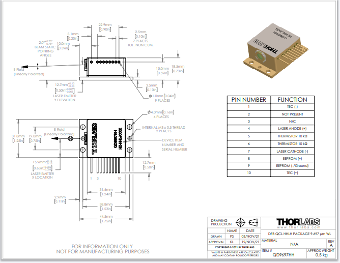 Thorlabs索雷博 QD9697HH - 分布反馈式量子级联激光器
