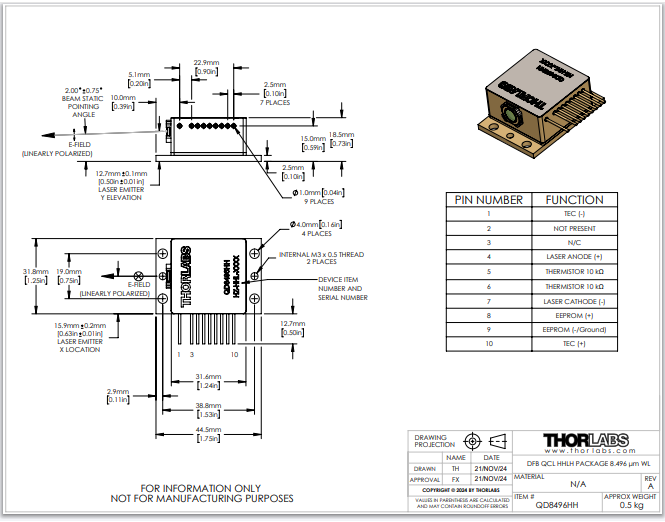 Thorlabs索雷博 QD8496HH - 分布反馈式量子级联激光器