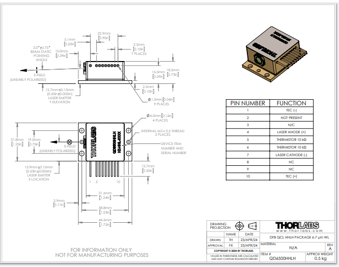 Thorlabs索雷博 QD6500HHLH - 分布反馈式量子级联激光器