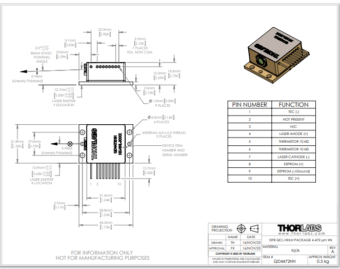 Thorlabs索雷博 QD4472HH - 分布反馈式量子级联激光器