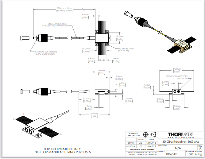 Thorlabs索雷博 RX40AF - 单模光接收器模块