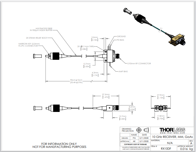 Thorlabs索雷博 RX10DF - 多模光接收器模块