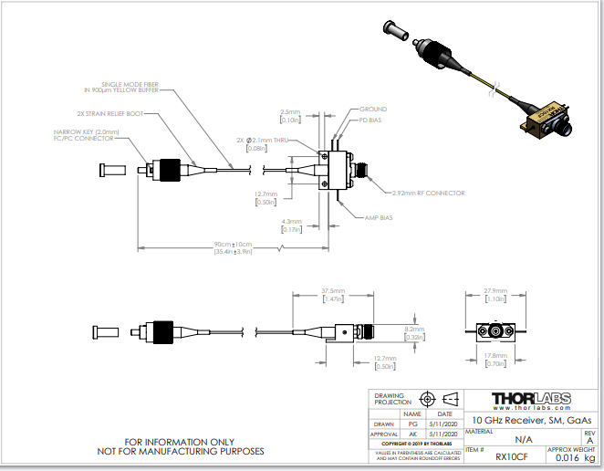 Thorlabs索雷博 RX10CF - 单模光接收器模块