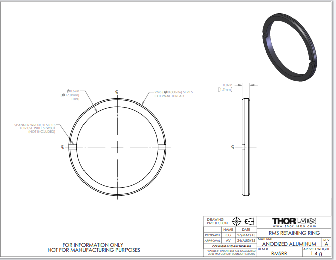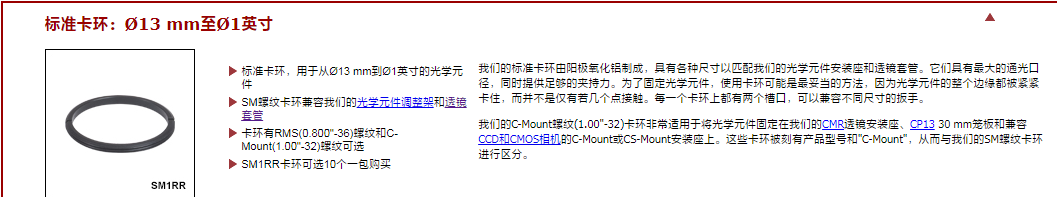Thorlabs索雷博 RMSRR - RMS系列卡环,用于RMS透镜安装座