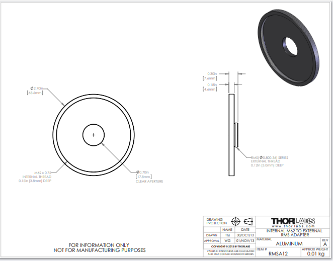 Thorlabs索雷博 RMSA12 - 转接件
