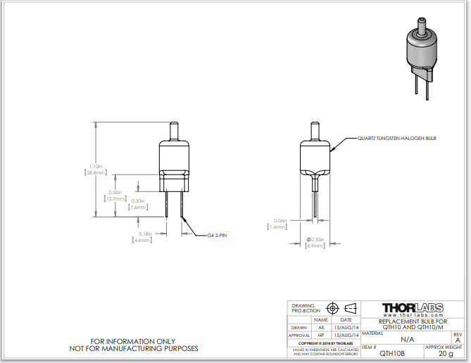 Thorlabs索雷博 QTH10B - 更换用的灯泡