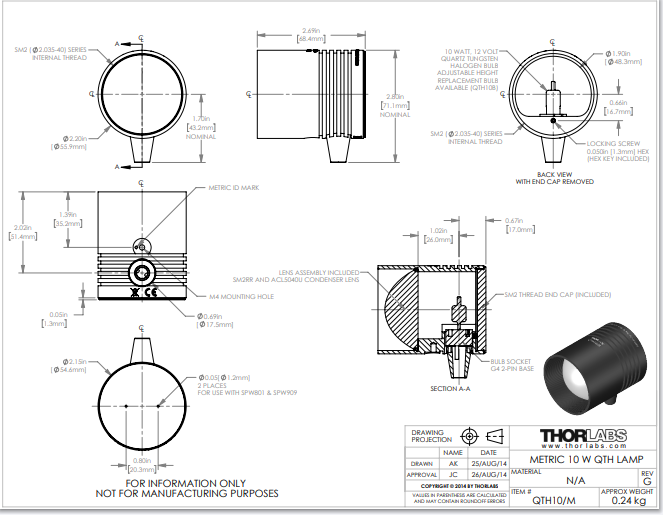 Thorlabs索雷博 QTH10/M - 石英卤钨灯