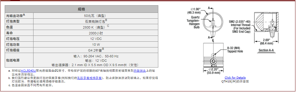 Thorlabs索雷博     QTH10/M - 石英卤钨灯