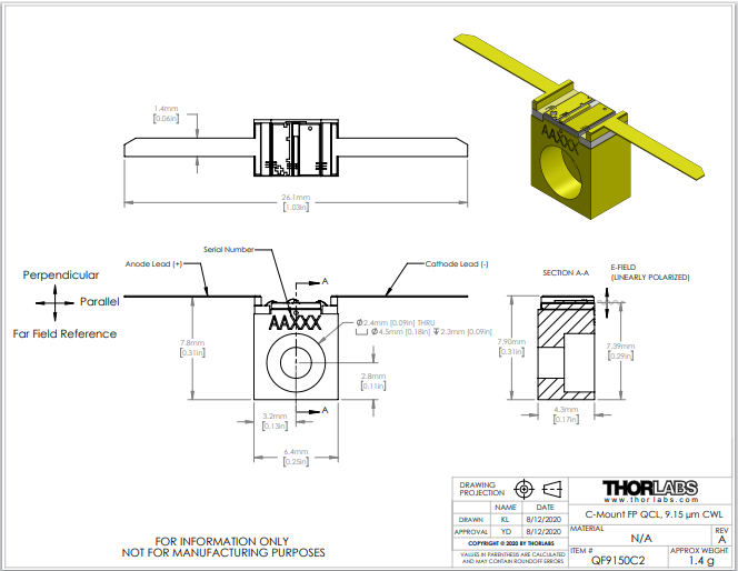 Thorlabs索雷博 QF9150C2 - 法布里-珀罗量子级联激光器