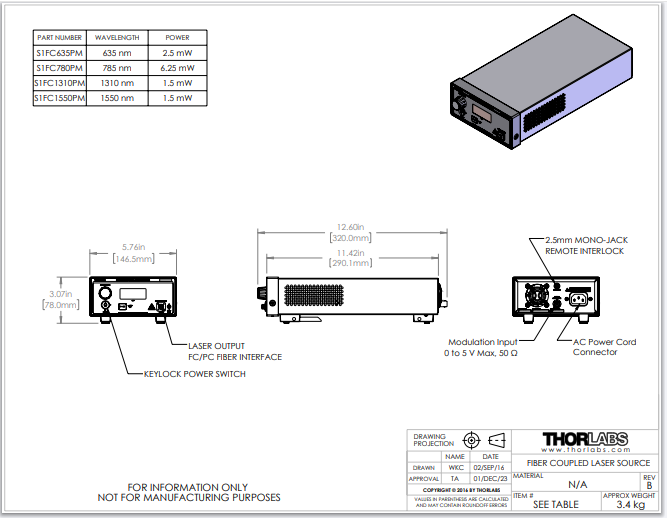 Thorlabs索雷博 S1FC635PM - 光纤耦合激光光源635纳米