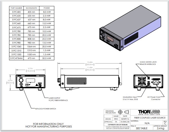 Thorlabs索雷博 S1FC1060 - 法布里-珀罗台式激光光源