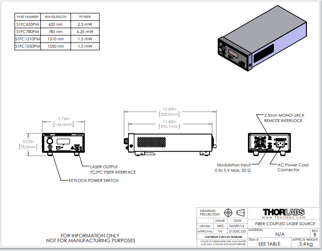 Thorlabs索雷博 S1FC1310PM - 光纤耦合激光光源