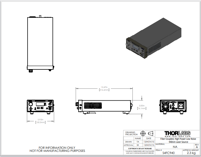 Thorlabs索雷博     S4FC940 - 法布里-珀罗台式激光光源