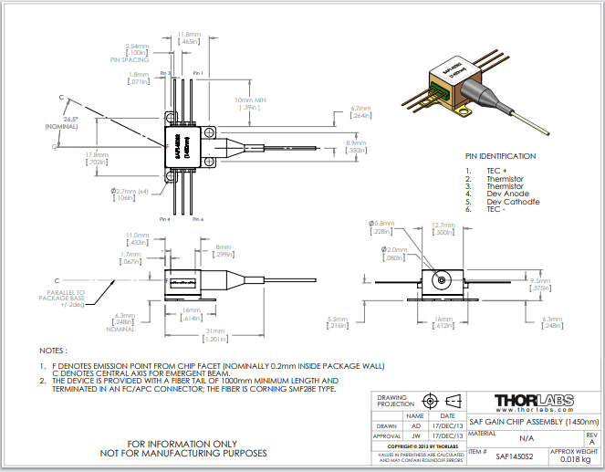 Thorlabs索雷博 SAF1450S2 - 已安装的SAF增益芯片