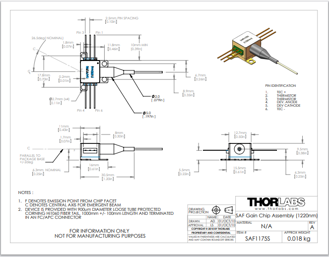 Thorlabs索雷博 SAF1175S - 已安装的SAF增益芯片