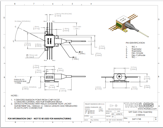 Thorlabs索雷博 SAF1174S - 已安装的SAF增益芯片