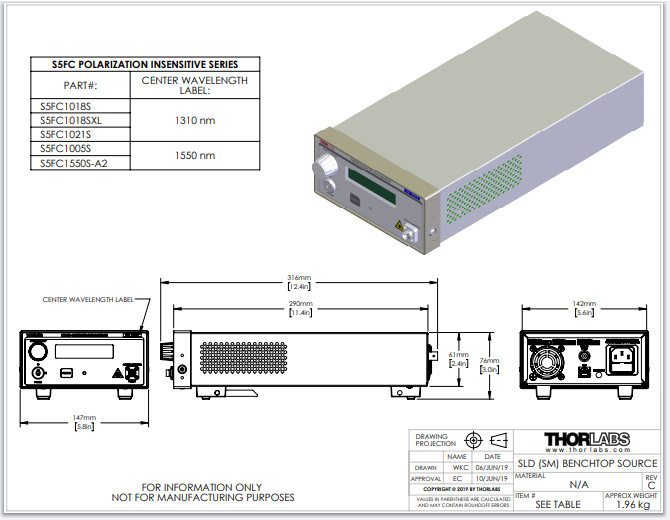 Thorlabs索雷博 S5FC1021S - 单模光纤耦合台式SLD光源