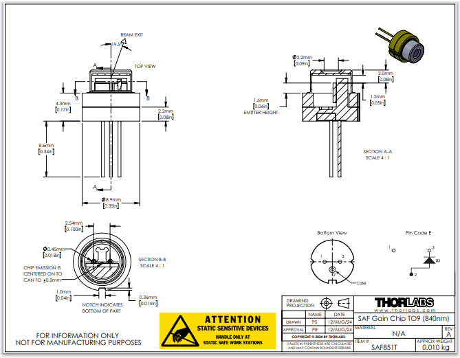Thorlabs索雷博 SAF851T - SAF增益芯片