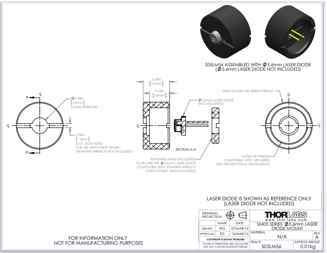 Thorlabs索雷博 S05LM56 - SM05螺纹铝制安装座