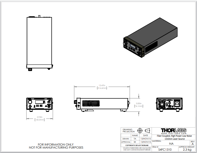 Thorlabs索雷博     S4FC1310 - 法布里-珀罗台式激光光源