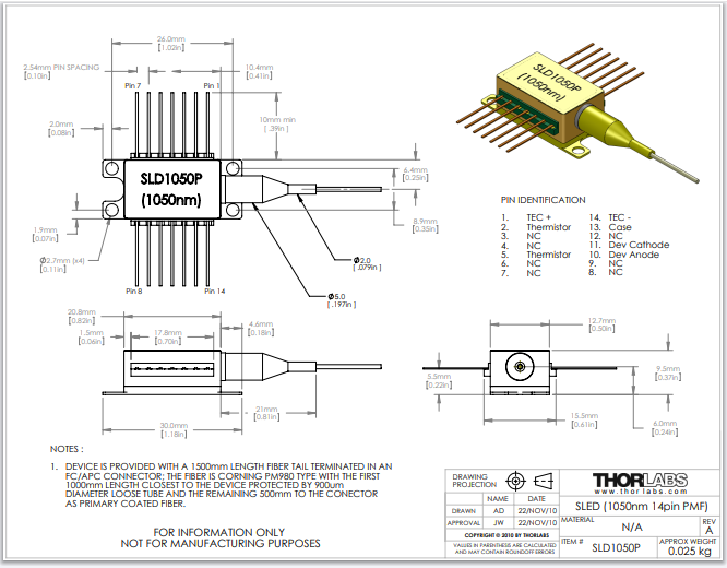 Thorlabs索雷博 SLD1050P - 超辐射发光二极管