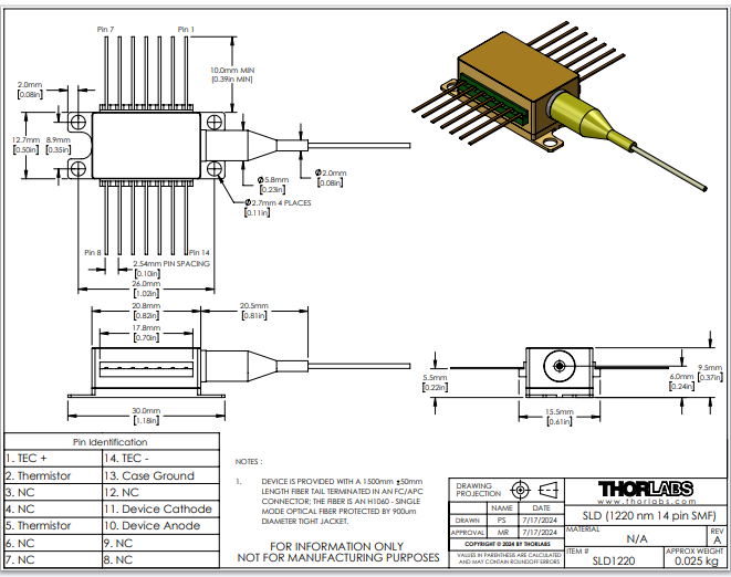 Thorlabs索雷博 SLD1220 - 超辐射发光二极管