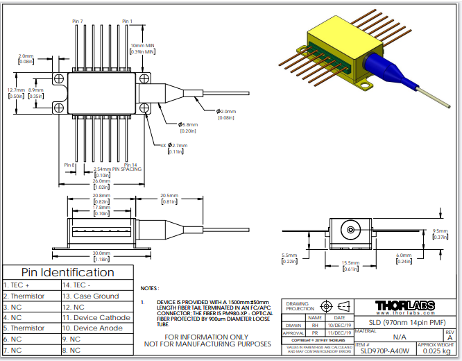 Thorlabs索雷博 SLD970P-A40W - 超辐射发光二极管