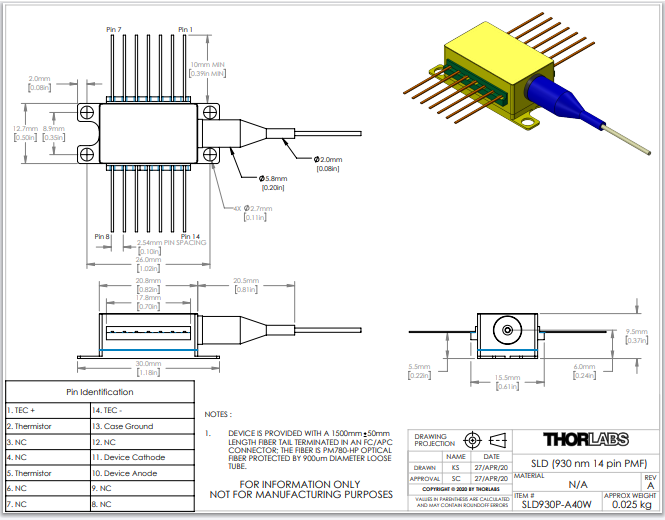 Thorlabs索雷博 SLD930P-A40W - 超辐射发光二极管