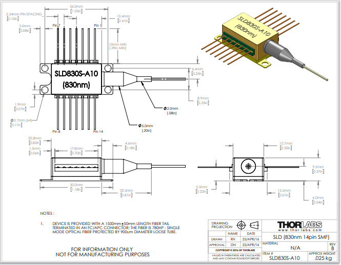 Thorlabs索雷博 SLD830S-A10 - 超辐射发光二极管