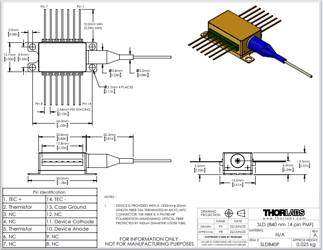 Thorlabs索雷博     SLD840P - 超辐射发光二极管
