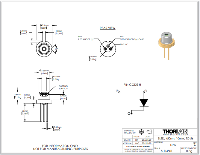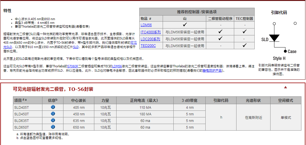 Thorlabs索雷博 SLD450T - 超辐射发光二极管