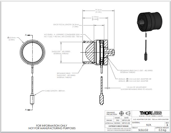 Thorlabs索雷博     SLSLLG2 - 液体光导转接件