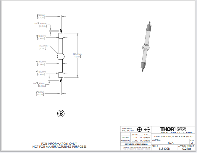 Thorlabs索雷博 SLS402B - 更换用的短弧汞氙灯泡