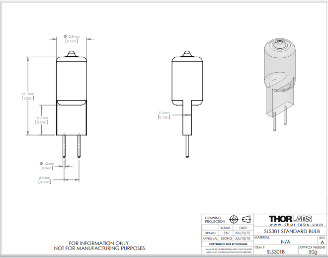 Thorlabs索雷博 SLS301B - 更换用的石英卤钨灯泡