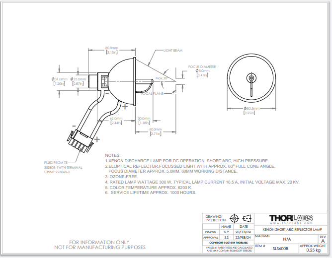Thorlabs索雷博 SLS600B - 替换氙灯灯泡