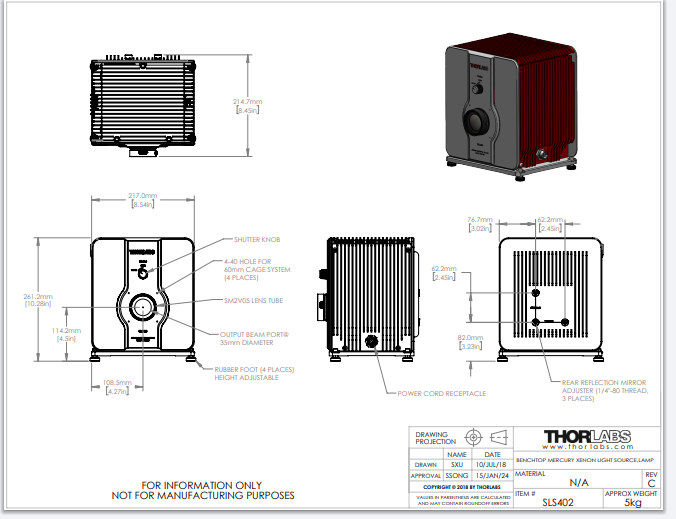 Thorlabs索雷博 SLS402 - 短弧汞氙灯光源