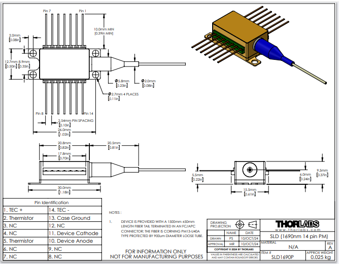 Thorlabs索雷博 SLD1410P - 超辐射发光二极管