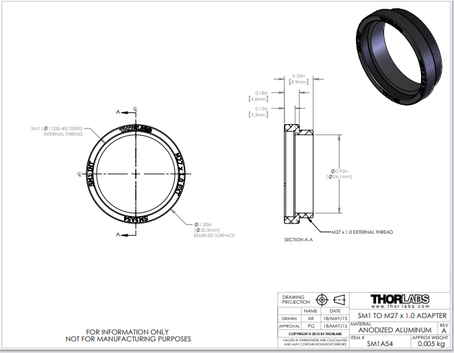 Thorlabs索雷博     SM1A54 - 转接件