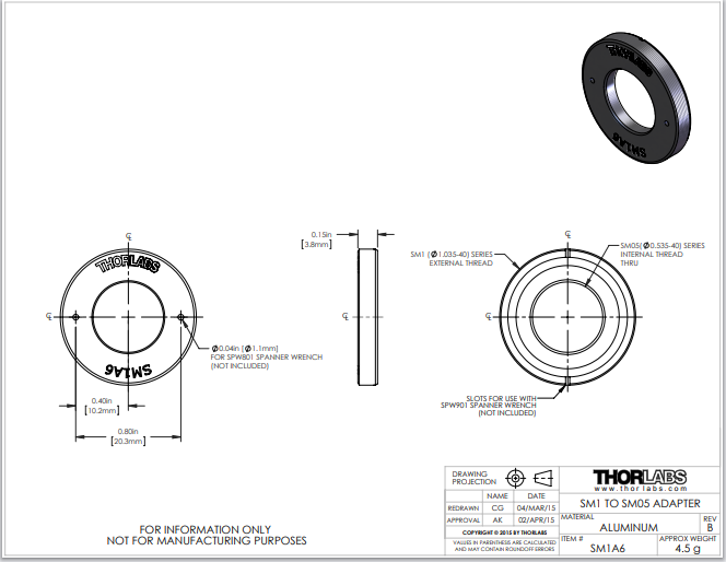 Thorlabs索雷博     SM1A6 - 转接件
