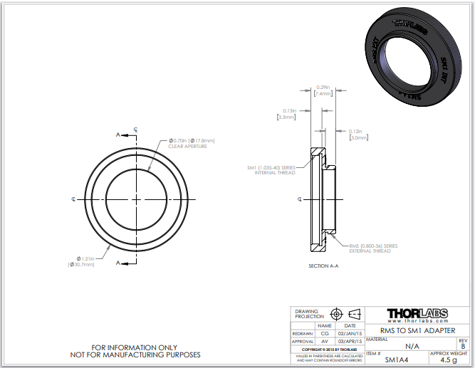 Thorlabs索雷博 SM1A4 - 转接件