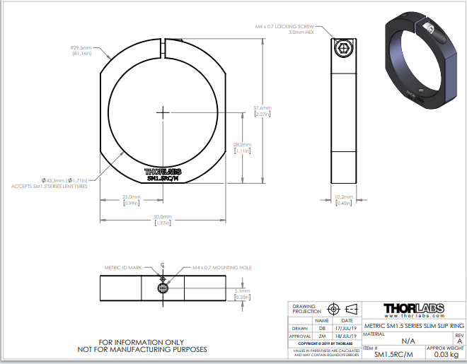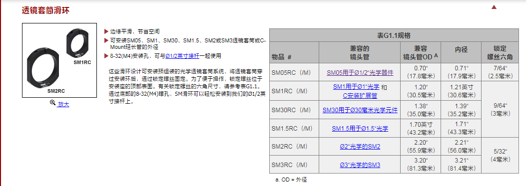 Thorlabs索雷博     SM1.5RC/M - 滑环,用于SM1.5透镜套筒