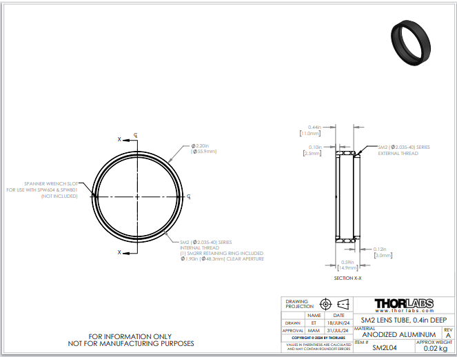 Thorlabs索雷博 SM2L04 - SM2透镜套筒