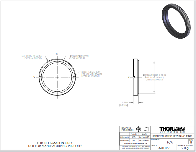 Thorlabs索雷博 SM1LTRR - 无应力卡环