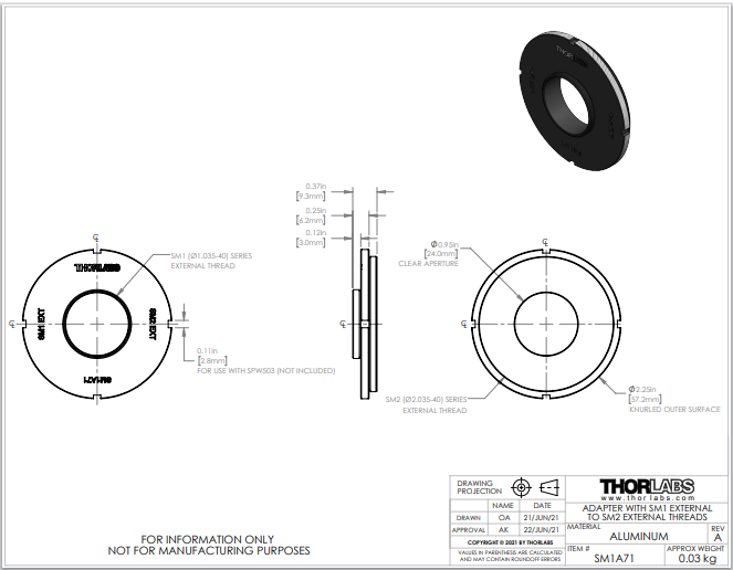 Thorlabs索雷博 SM1A71 - 转接件