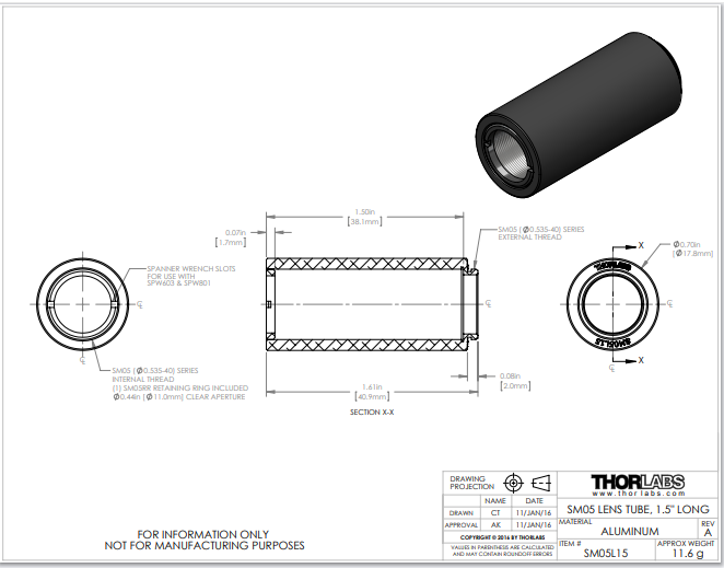 Thorlabs索雷博 SM05L15 - SM05透镜套筒