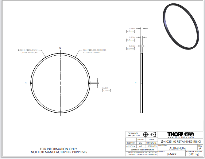 Thorlabs索雷博 SM4RR - SM4卡环,用于Ø4英寸安装座